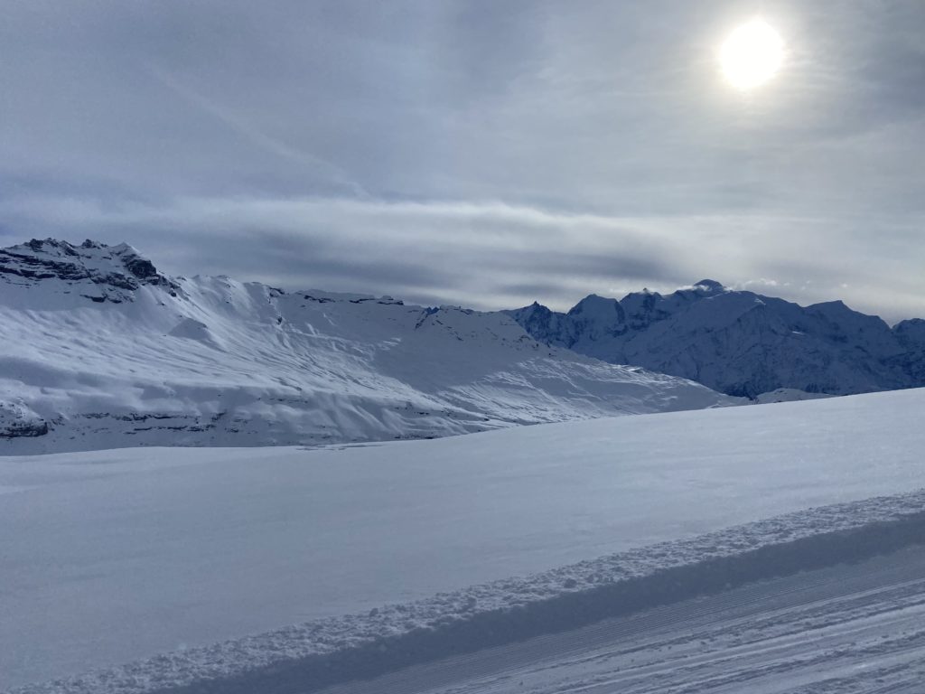 After a quick photo session and the obligatory selfie you are very quickly at the start of your 14 kilometre journey as the Les Cascades piste leaves the resort of Flaine behind.